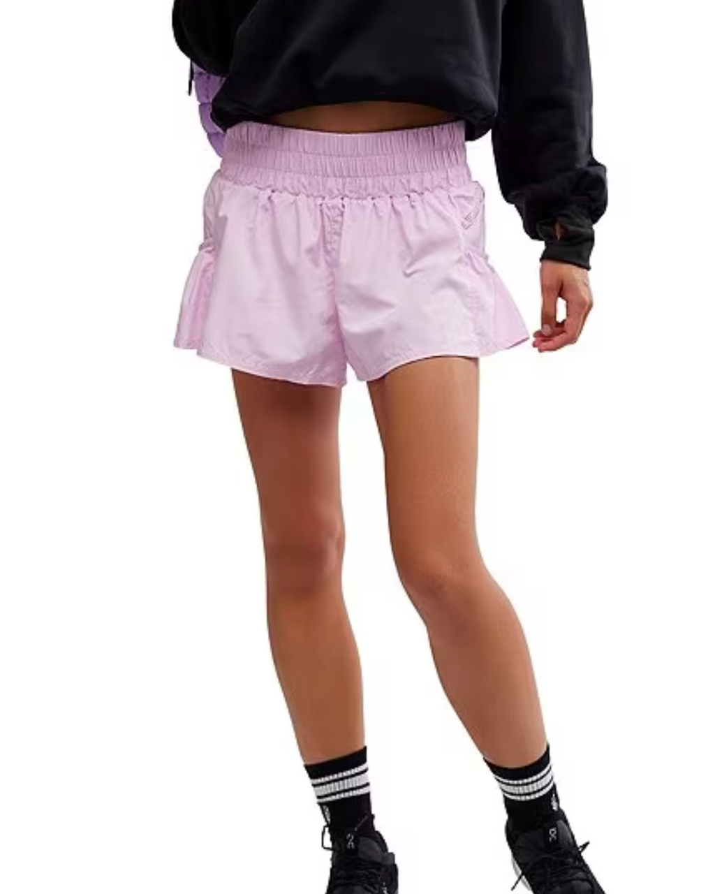 So flirty and fun shorts to spice up your workout attire, featured in a flowy style with a high-rise, smocked waistband and side pockets.