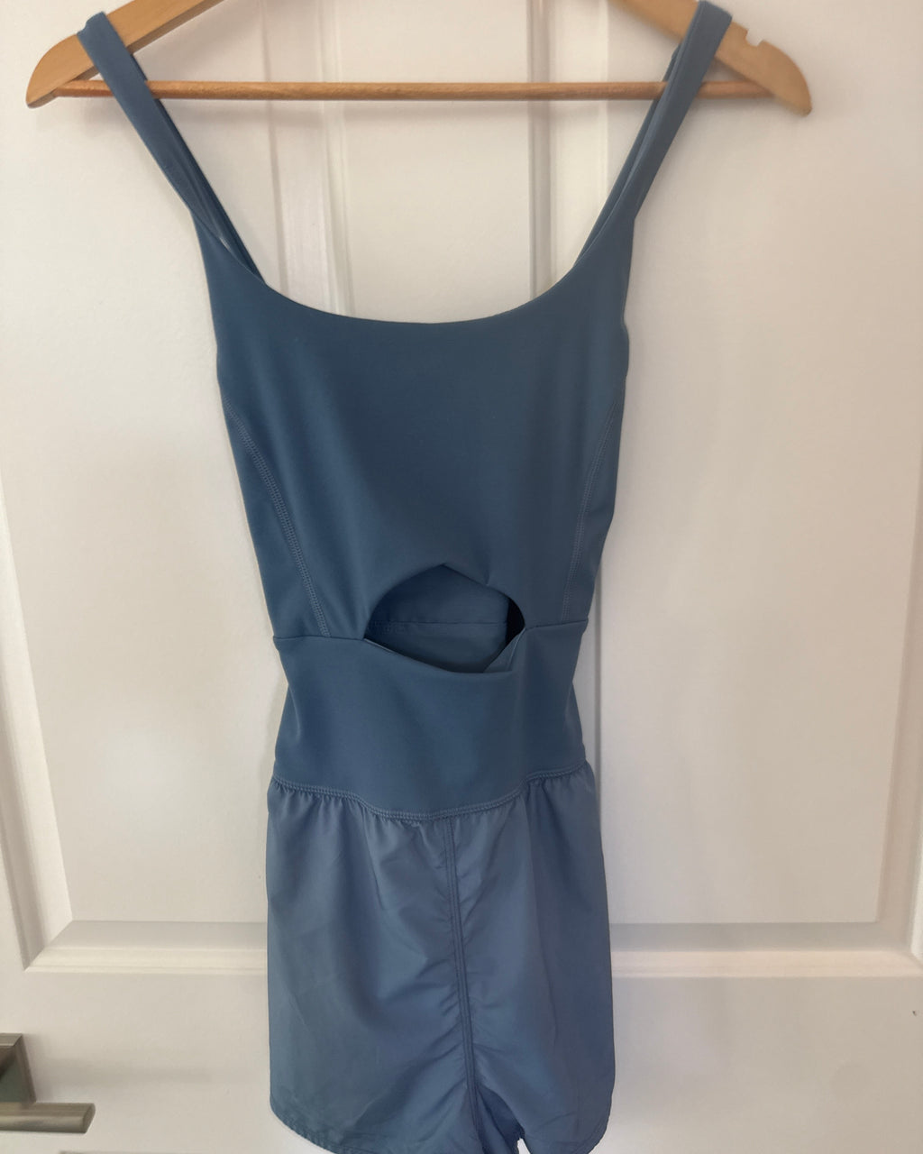 Meet the Rightsie Runsie in Skyline – your one-and-done outfit for movement, style, and ease. Designed for medium-impact workouts (and everything in between), this sporty onesie pairs a slim-fitting top with a breezy pair of retro-inspired shorts, all pulled together by a sleek center cutout and strappy open back. Made from a compressive, breathable fabric, it hugs in all the right places while keeping you cool and comfortable. A hidden back zipper pocket adds just the right amount of function for storing your small essentials on the go. Whether you’re hitting the trails or heading to brunch after barre, the Rightsie Runsie moves with you—and looks effortlessly good doing it.