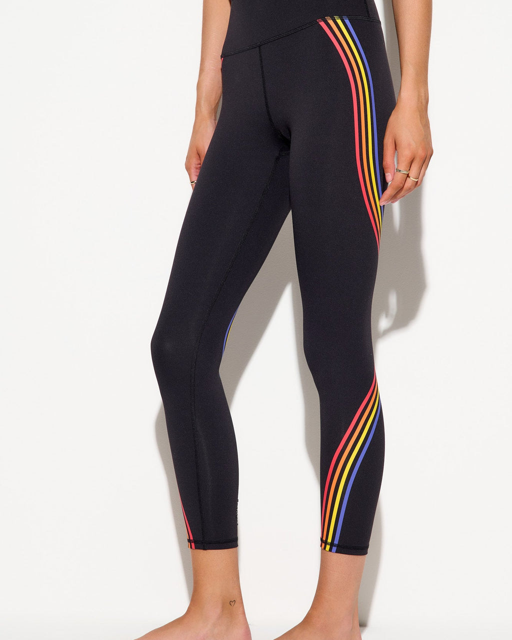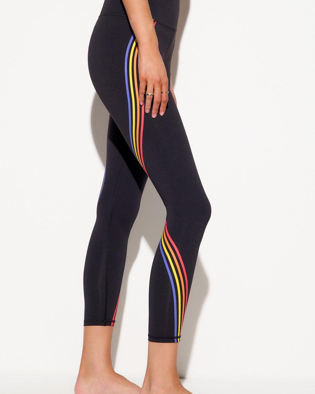 Flow from sunrise surf to après-ski glow in the Nirvana Lotus Legging. Smooth, supportive fabric and joy-inducing rainbow stripes keep you moving, mindful, and wrapped in the high-vibe magic of a West Coast winter.