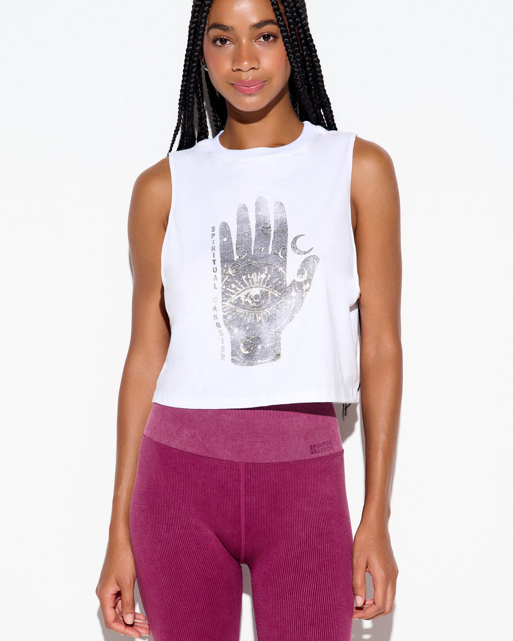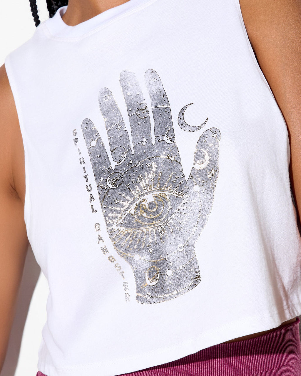 Manifest, protect, heal. The Spirit Crop Tank channels empowering affirmations, with a gold foil embellished incantation graphic and lived-in, vintage feel.