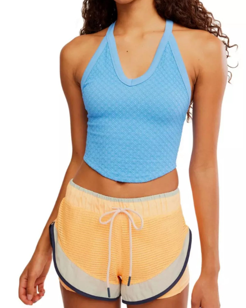 Features: Barely-there, super soft fabrication; minimal coverage; V-neckline; racerback; scoop hem hits right above waist.