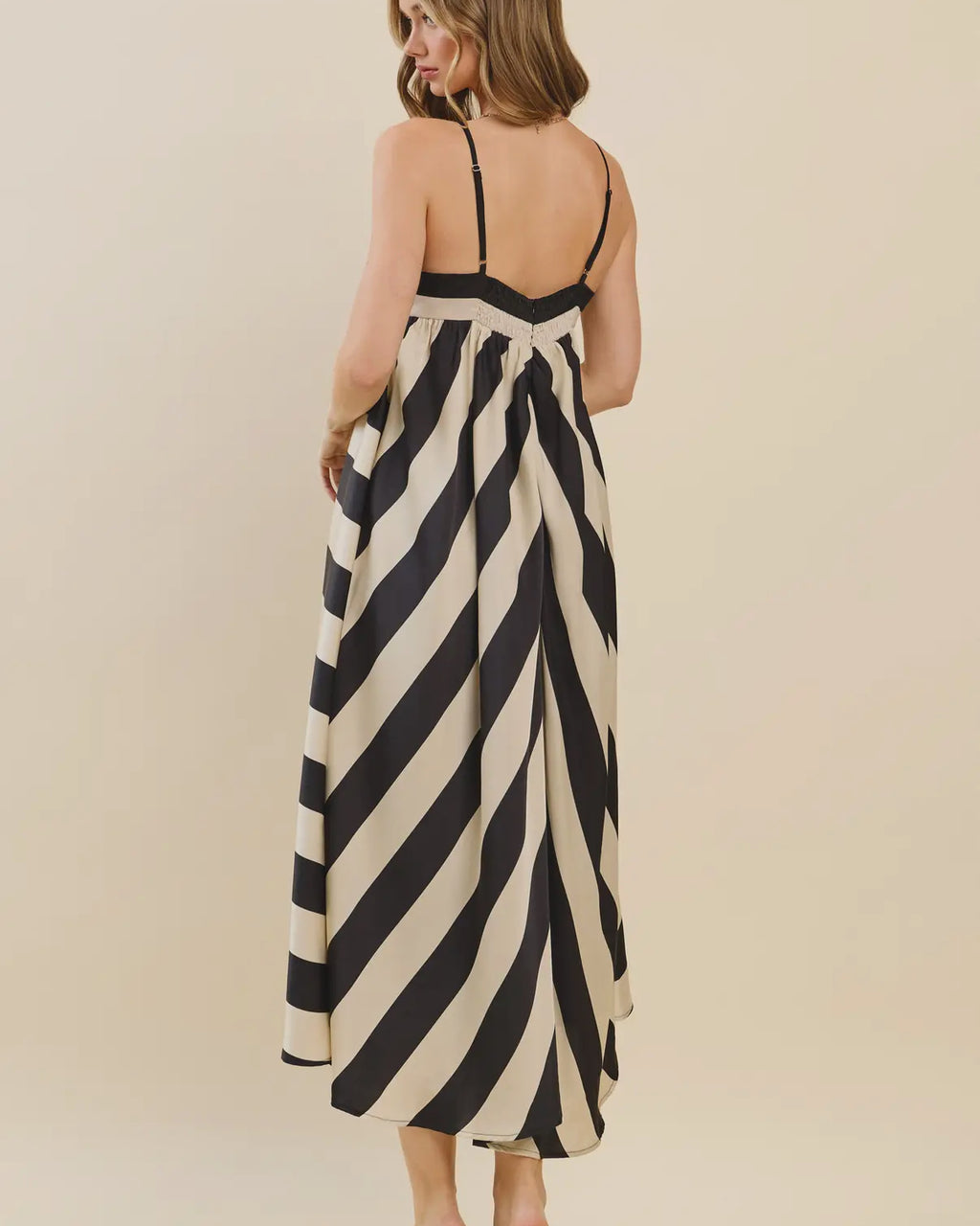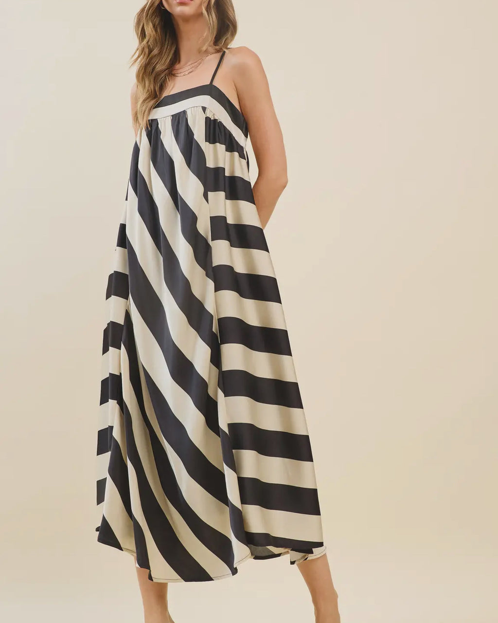 Flowy dress with adjustable straps | black and white stripe By TCEC