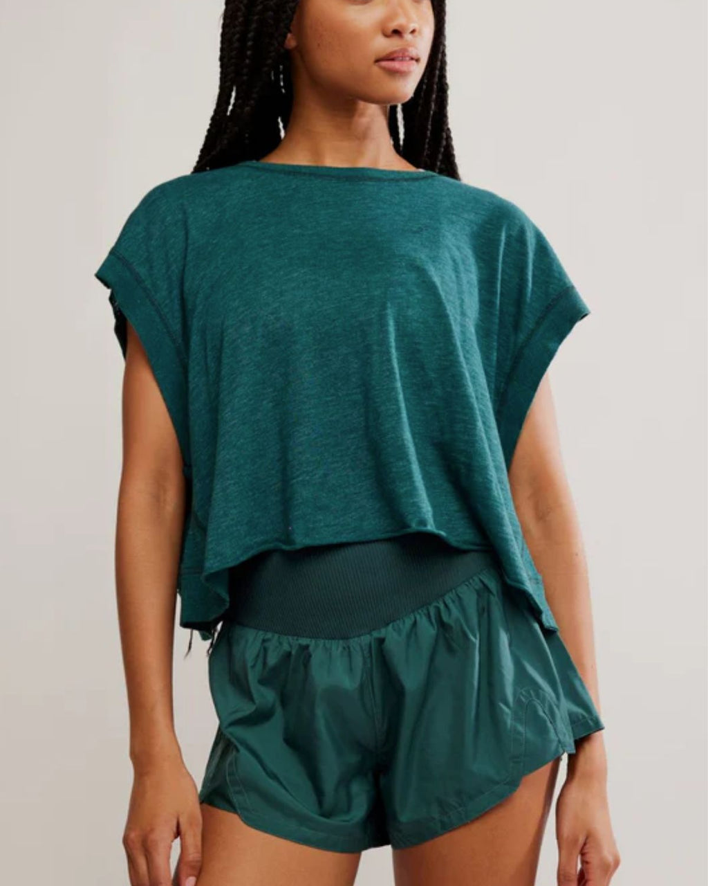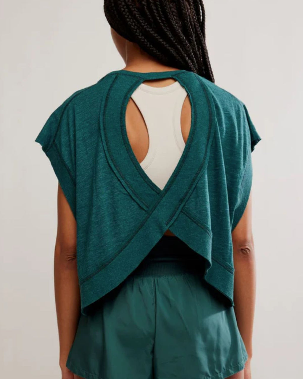 Make your next move in this light and airy layering tee featured in a slouchy design with a wrapped cutout back that’ll keep you cool through all your workouts.